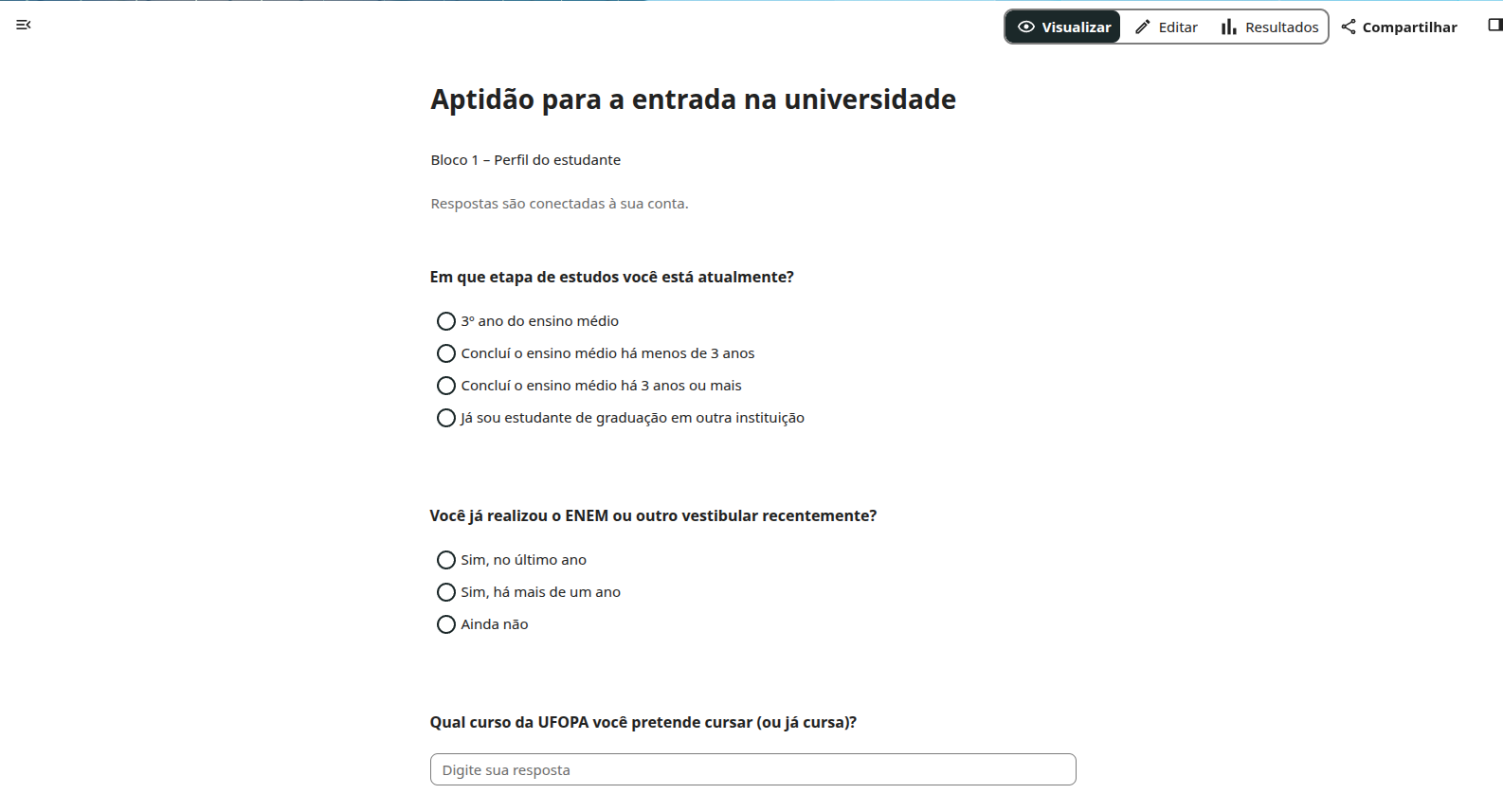 - “Visualizar”: Para ver o formulário exatamente como será apresentado aos respondentes.