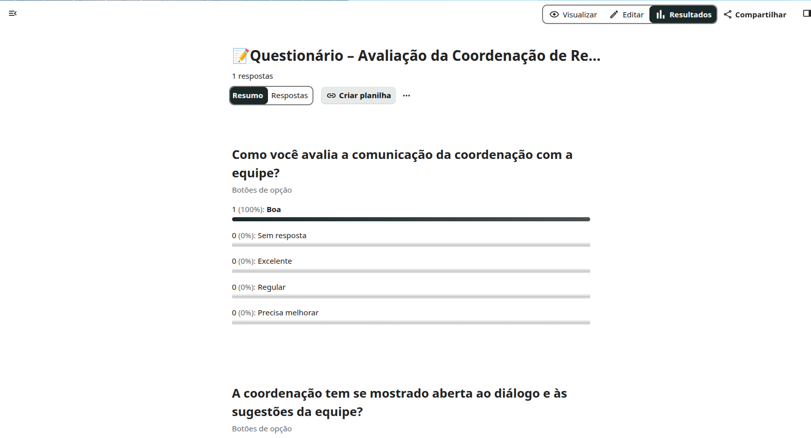 - Respostas: Lista detalhada de cada resposta individual (se não estiver configurado como anônimo).