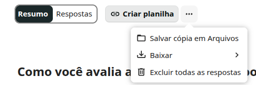 - Opções de gerenciamento: Criar planilhas, baixar dados, excluir respostas específicas.